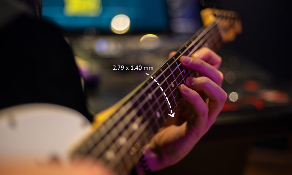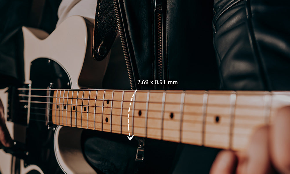 Nuestros trastes son de acero inoxidable, lo cual asegura una vida útil más larga. Además se pueden encontrar en dos tamaños: Jumbo y Medium Jumbo
